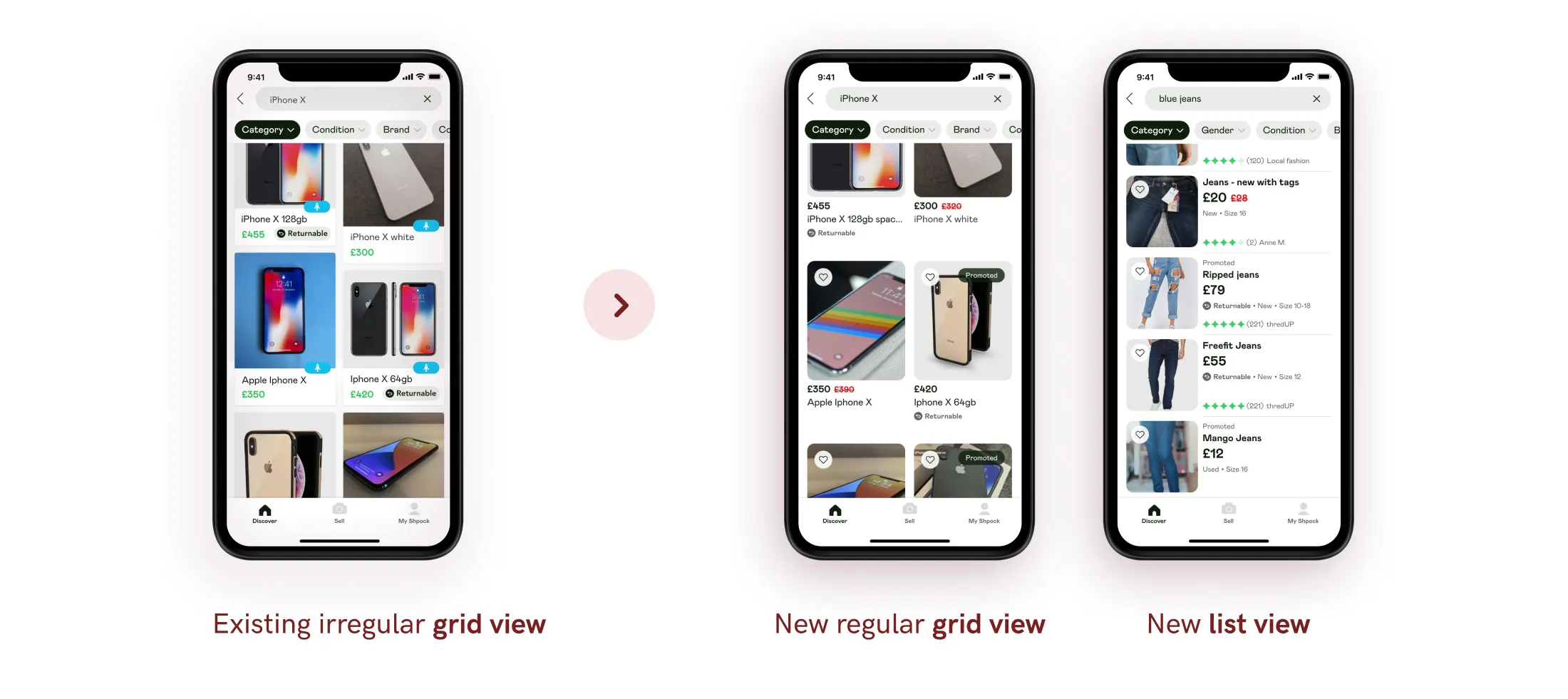 We noticed that depending on what they were searching for users prefer one or the other. For example in the case of “Fashion” the grid view was best but for “Electronics” the list view was the winner.