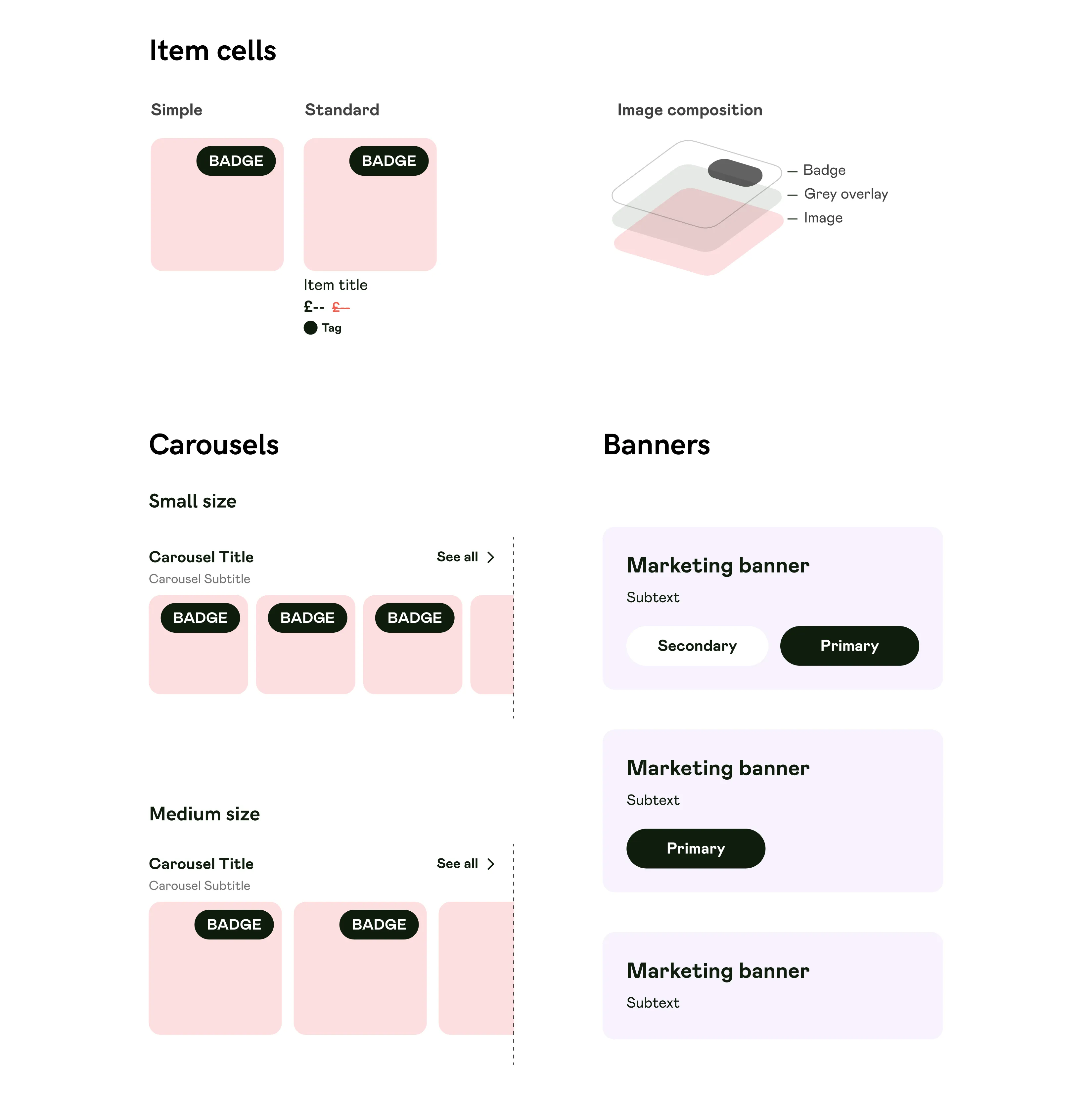 Aside from the carousel components, our main way of displaying items is the grid views. Inherently this was an infinite scrolling screen composed of 2 colors with item cells. The size of the item cells depended on the size of the item image. This made the grid very irregular and hard to follow.