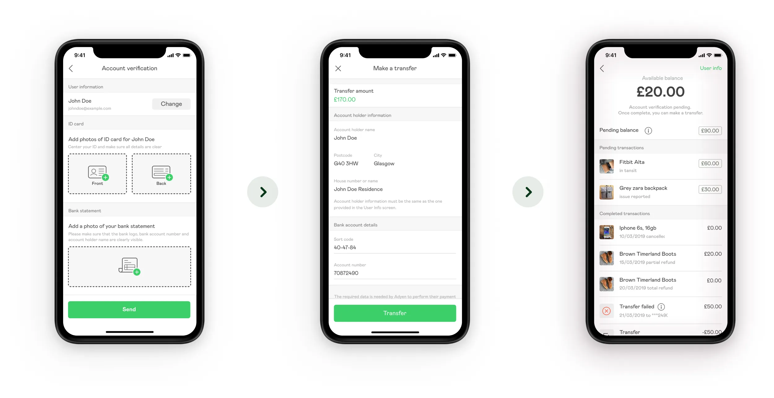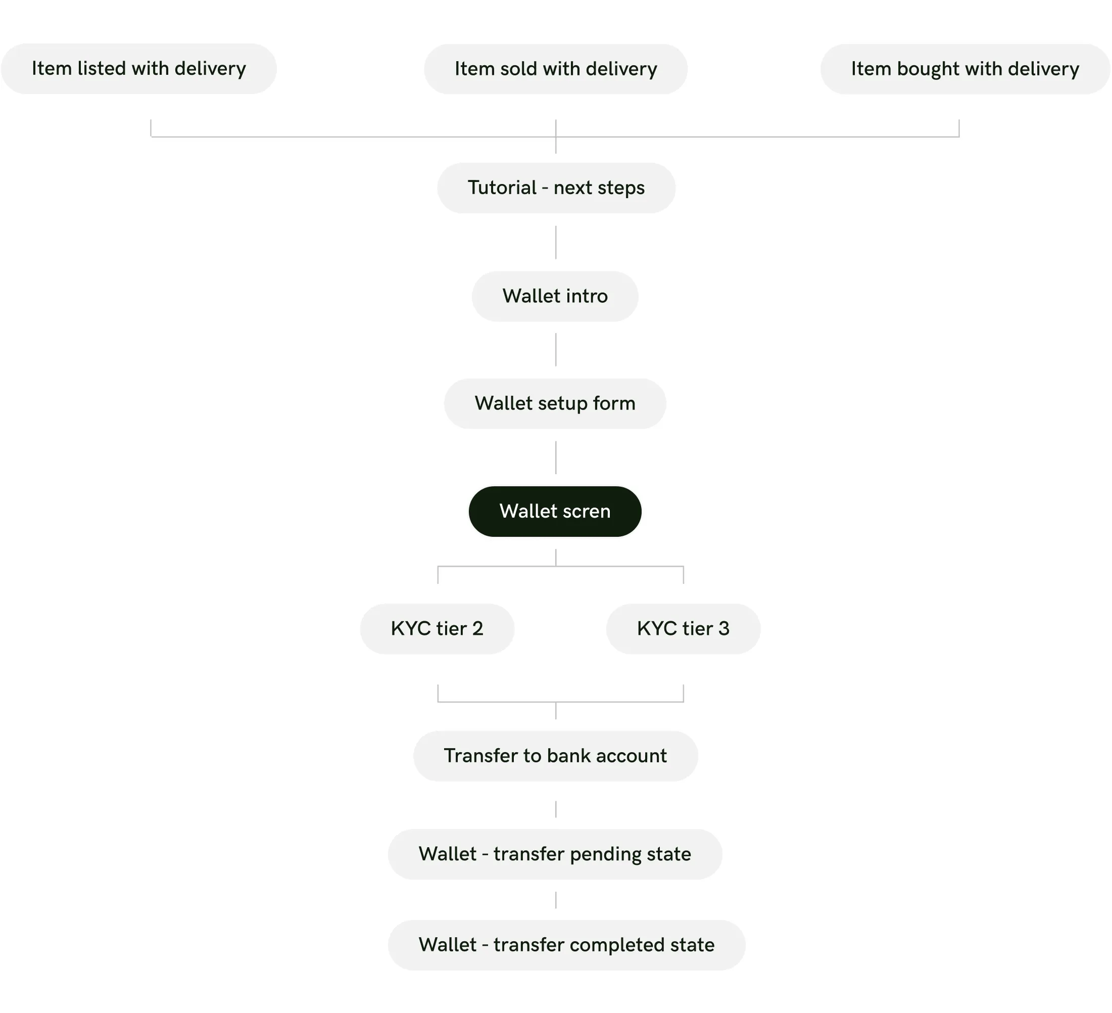 Once a transaction was completed the money was ready and waiting in the wallet. The KYC (know your customer) process helped make sure we had all the information required before a user transferred the funds to their bank account. Similar to the rest of the flow we only ask for this information if it's strictly necessary.